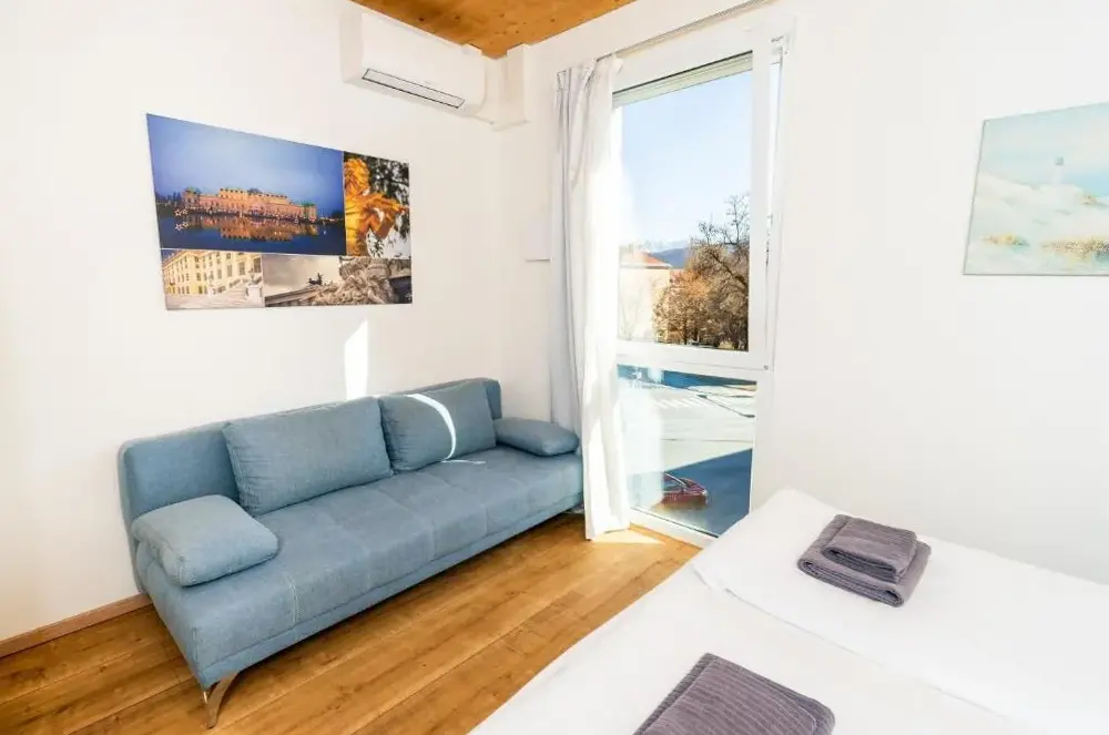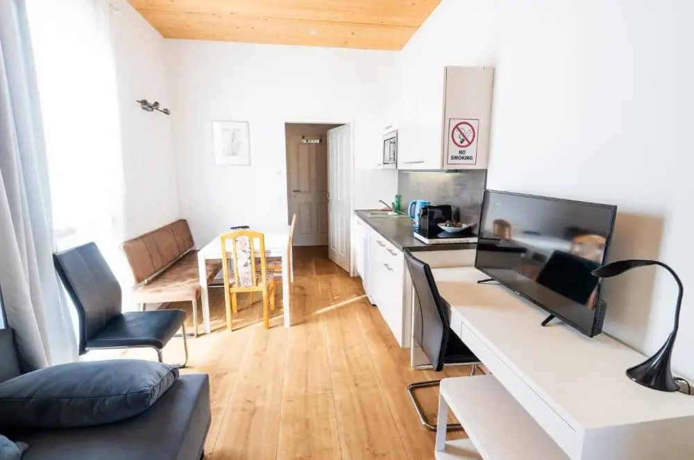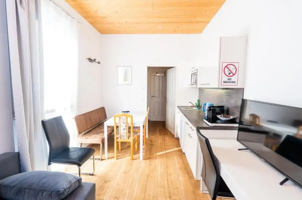 The 215 Apartment Wien at Hans-Sachs-Straße 34 in Klagenfurt am Wörthersee offers a compact yet functional stay for up to six guests across its 42 square meters. Located centrally near key attractions like the Provinzmuseum (950 meters away) and Heiligengeistkirche (850 meters), this apartment puts visitors within easy walking distance of cultural landmarks, historic sites, and local amenities. The Westlicher Salon and Asien Wok restaurant are just 300 meters down the street, providing convenient access to dining options without needing transportation. For those interested in castles, Annabichl Castle sits approximately two kilometers north, while Welzenegg Castle lies about three kilometers east—a short drive or bike ride away. Nature lovers will appreciate nearby Strandbad Reifnitz beach (9 kilometers south) and Parkbad Krumpendorf Beach (6 kilometers west). Ljubljana Jože Pučnik Airport remains roughly 43 kilometers northeast, making it accessible for travelers arriving by air but far enough to ensure a quiet urban setting once settled in. Inside, the unit includes free Wi-Fi throughout and features accessibility accommodations for guests with mobility needs. Private parking on-site ensures ease of arrival whether traveling by car or returning after exploring the area’s scenic routes.